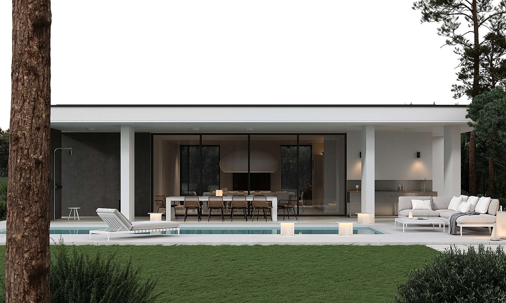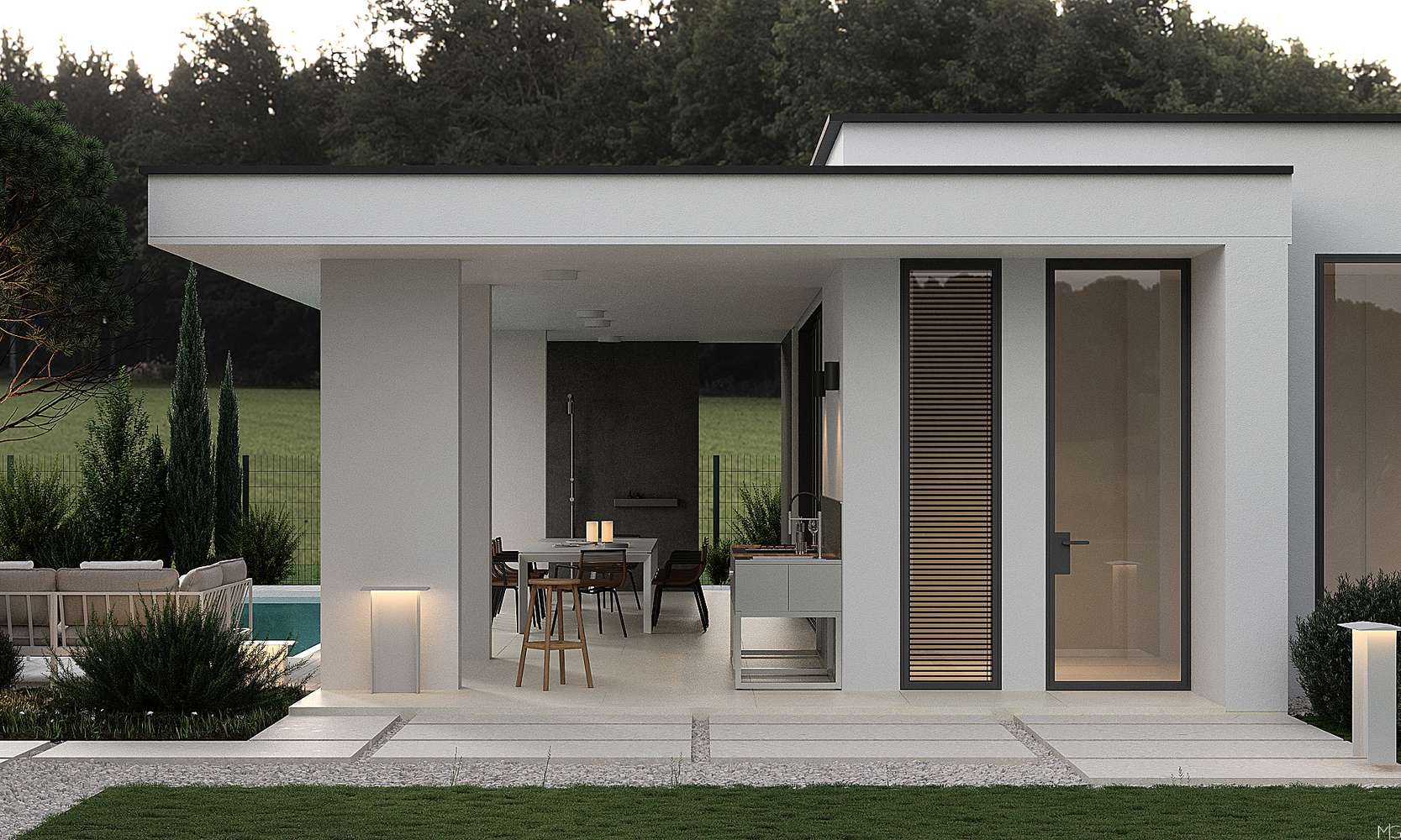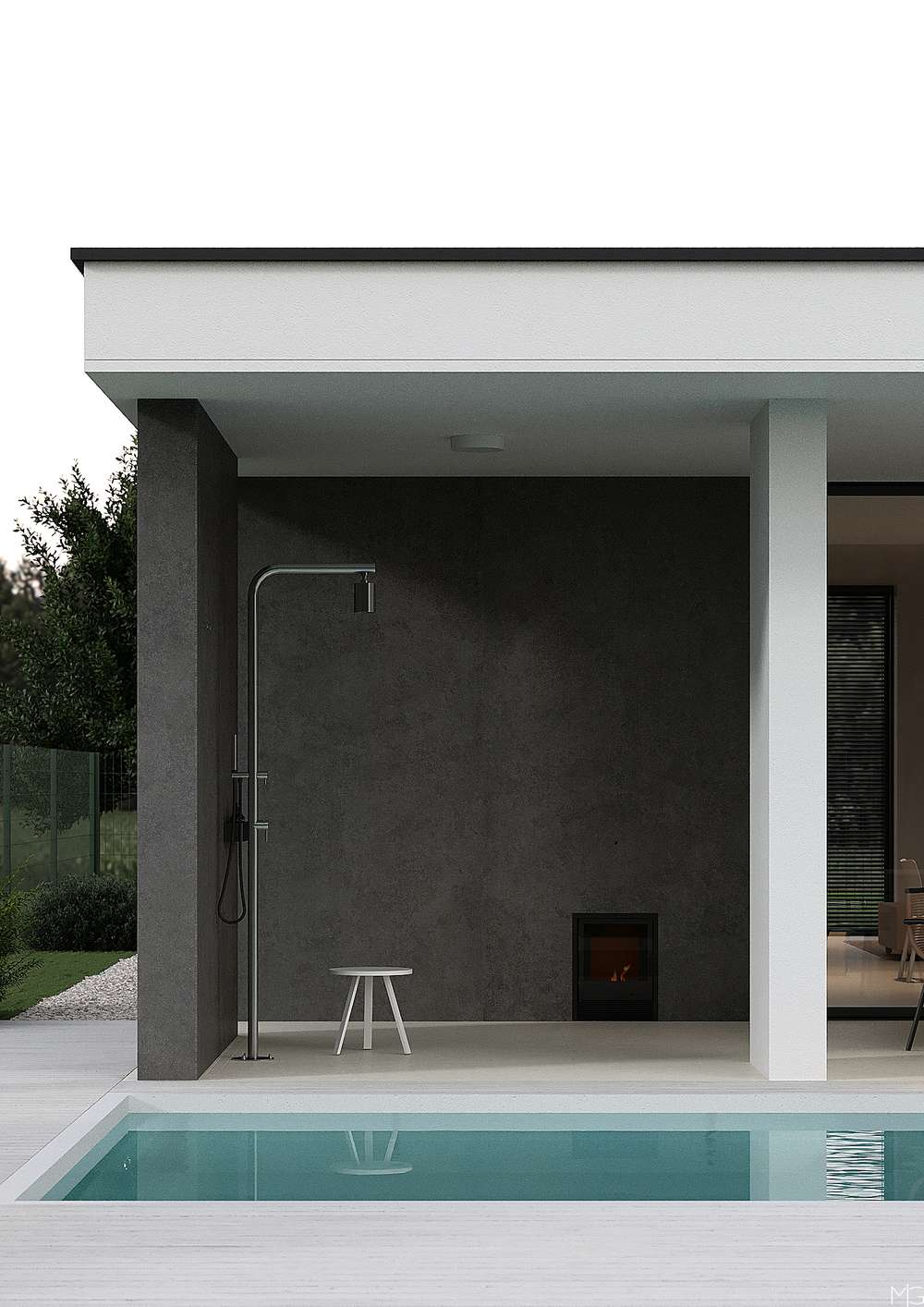 Архитектурный проект представляет собой элегантное пространство в монохромной гамме, сочетающую функциональность и стиль. Здесь продумана каждая деталь для комфортного отдыха и приема гостей.